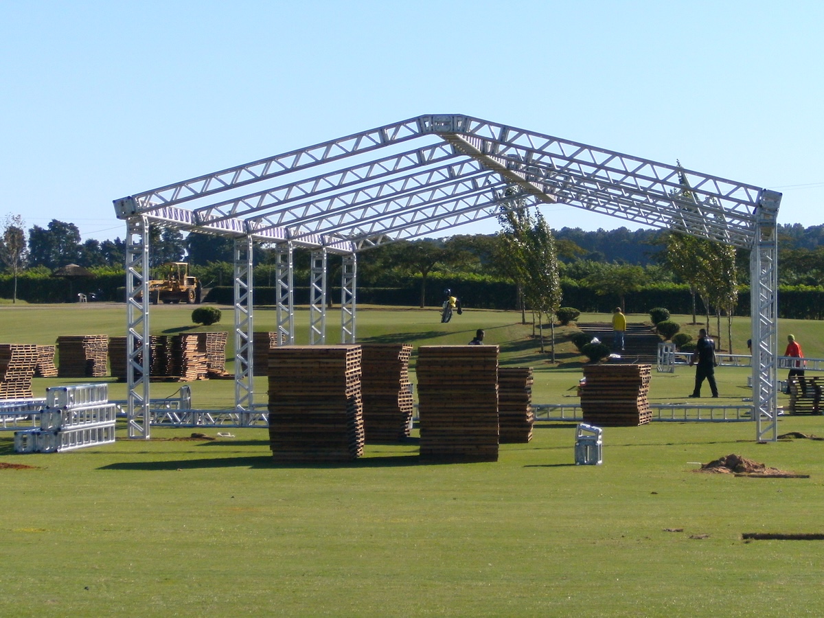 Essas estruturas são usadas em palcos, pórticos, suportes de iluminação e estandes, permitindo montagens complexas com rapidez e total segurança.