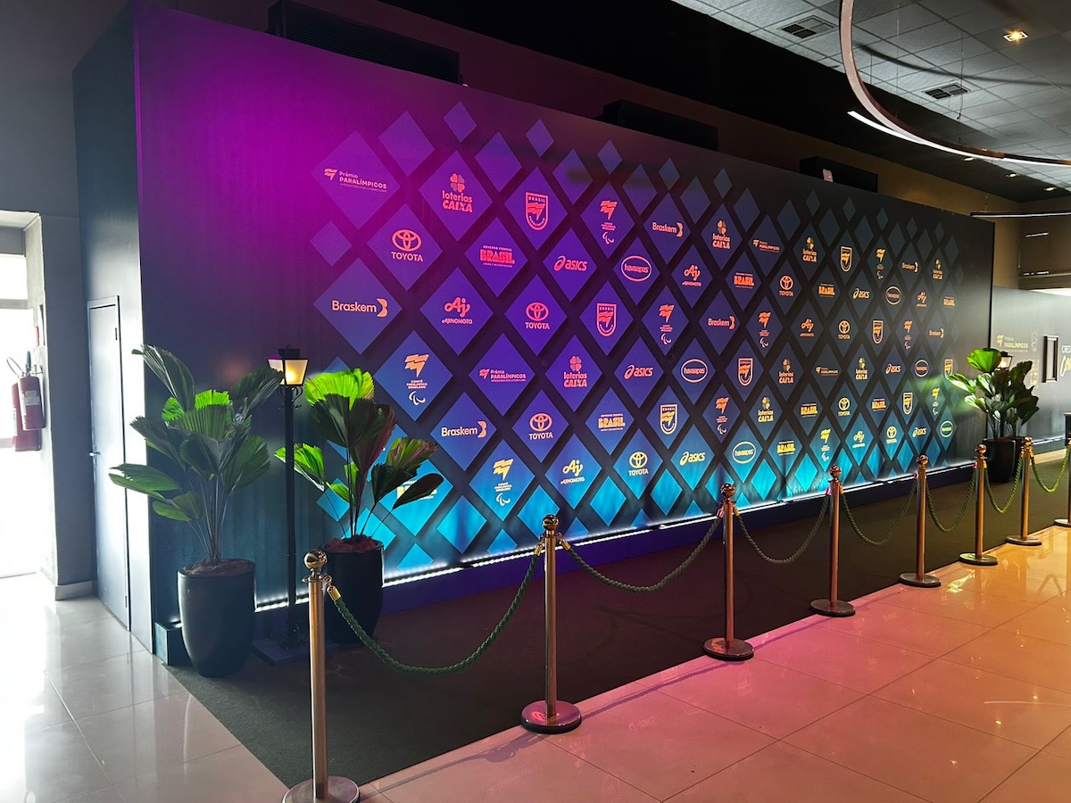 Montagem completa de estruturas e cenografia do palco para uma celebração de alcance nacional, simbolizando nosso orgulho em apoiar o esporte e a inclusão.