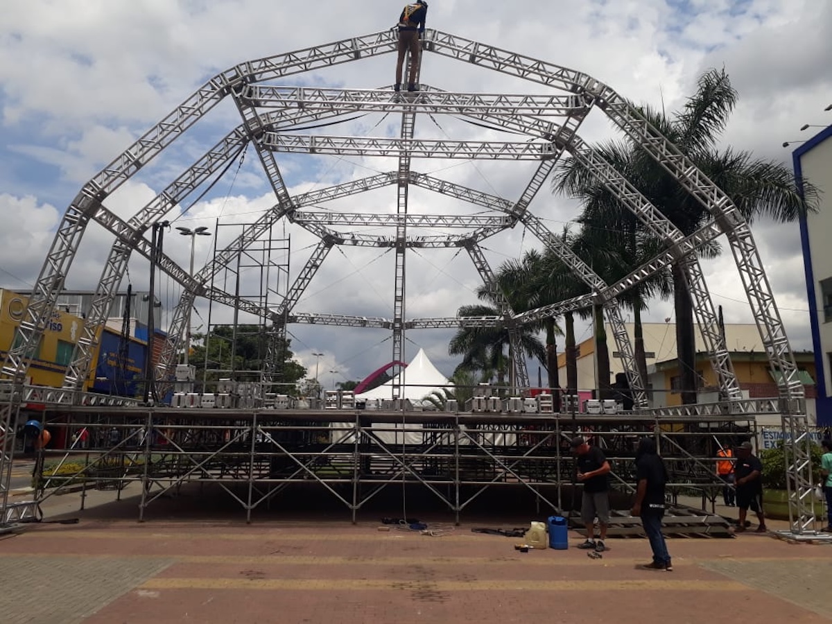 Estrutura principal de um dos maiores eventos culturais da cidade, reconhecida pela precisão técnica e rapidez na montagem.